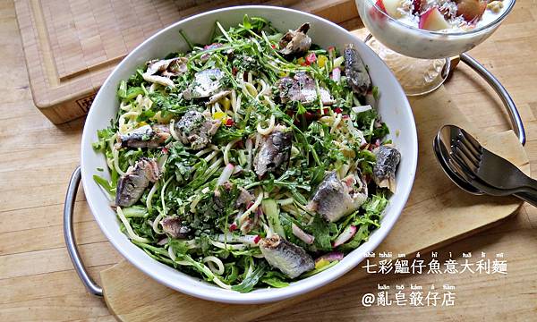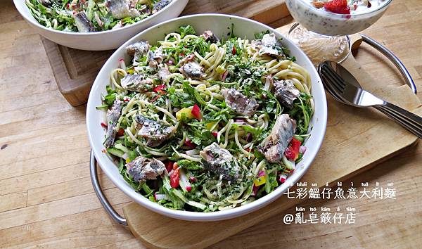 翁仔姐臨時臨曜決定去 Baden-Baden 看 Yoshitomo Nara 奈良美智 ê 展覽,慣勢 tī 透早食甲若皇帝 ê 我 mā 需要 kā 本底攢好勢 ê 菜單換掉。挽肉愛換罐頭,塗肉林檎愛換....當我巡棧間罐頭有啥通十分鐘食甲若皇帝,鰮仔魚出現在眼前。我知影我愛款啥來食矣。自本就按算餾番薑仔肉燥敆塗肉林檎,這久會使得 kā 切做肉幼仔 ê 甜番薑仔交鰮仔魚徙來做生拌意大利麵 hōo 伊繼續乞食伴羅漢,好味好素。