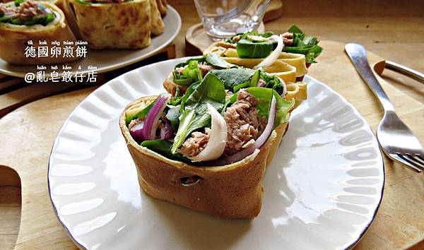 本底按算攢𪜶兜傳統 ê sa̋n-tóo-it-tsih 兩塊麭抹厚甲若壁 ê Bá-tah,中間敆一塊 Tshì-sù 佮 Há-muh,因為伊 ê 迷湯 hōo 我想著交 Crêpe 法國薄餅煎無宛 2 體 ê 唯一精差 tī 糖並以兩个德國做比如,西德講 Pfannkuchen,東德講 Eierkuchen,勥母講伊 kan-ta 會使得做下晡點心 ê 德國卵煎餅。